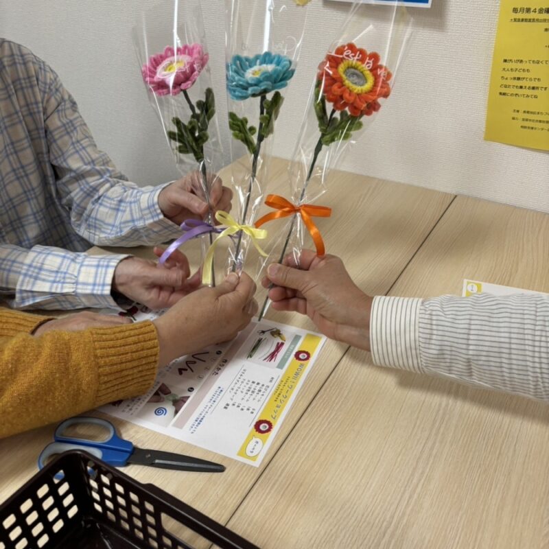 就労継続支援B型事業所WowⅡ!スタッフです。 先日、事業所にてモールフラワーのワークショップを開催