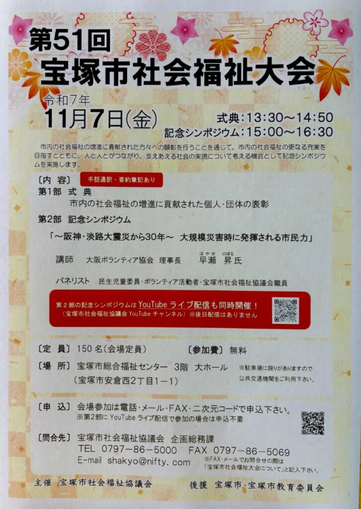 11月7日(金)に開催される宝塚市社会福祉大会のサブ企画に参加させていただきます。