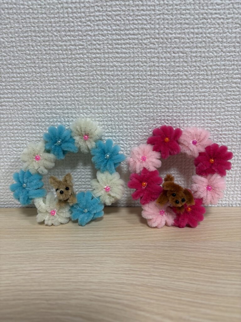 最後にビーズを貼って、と~っても可愛いワンちゃんリースが完成しました!